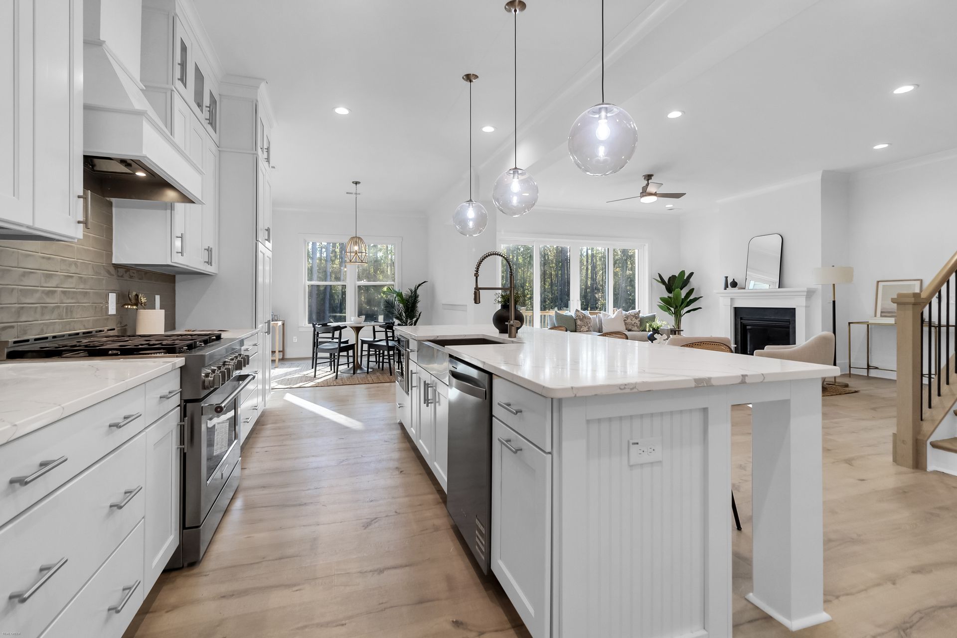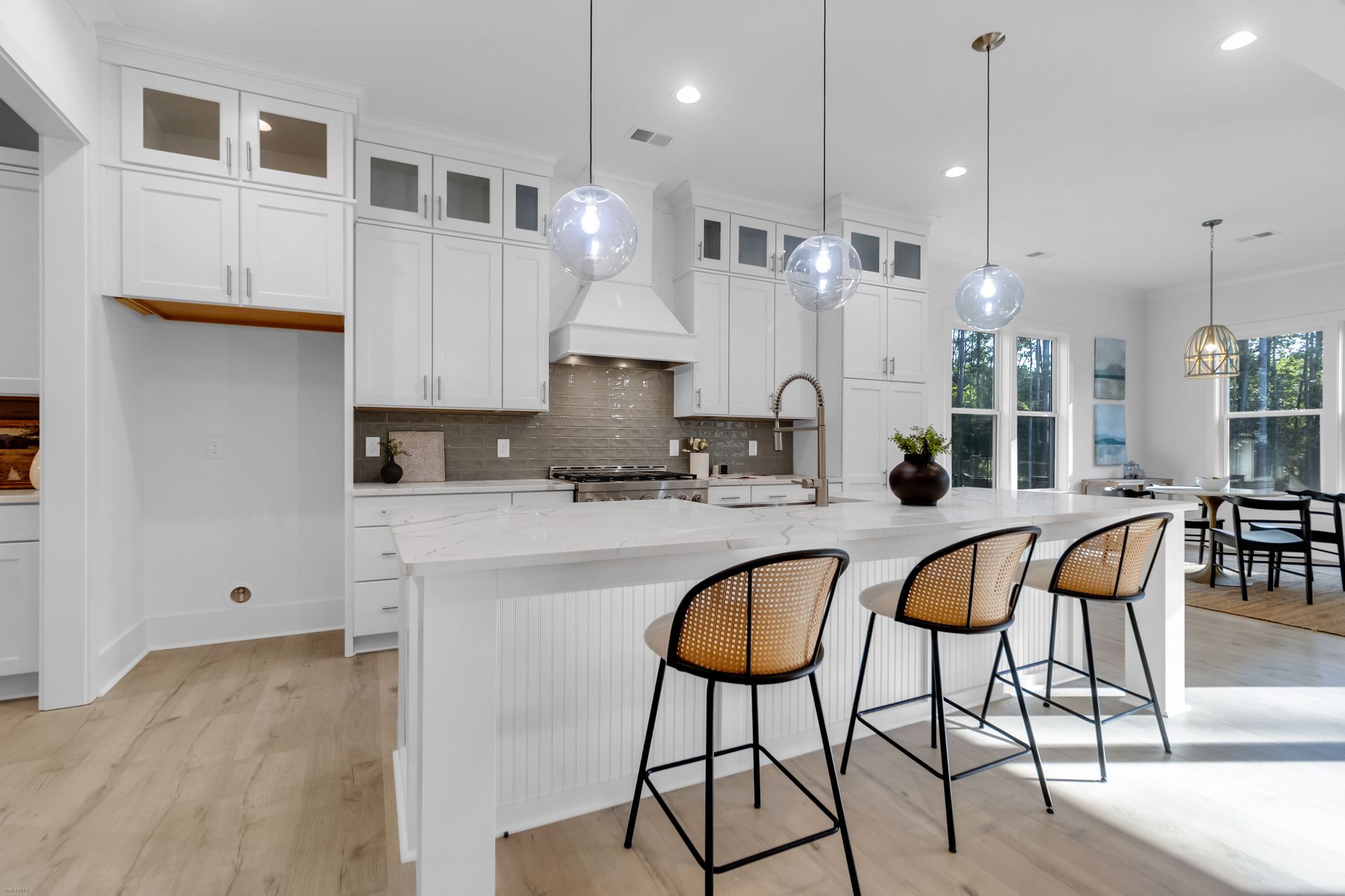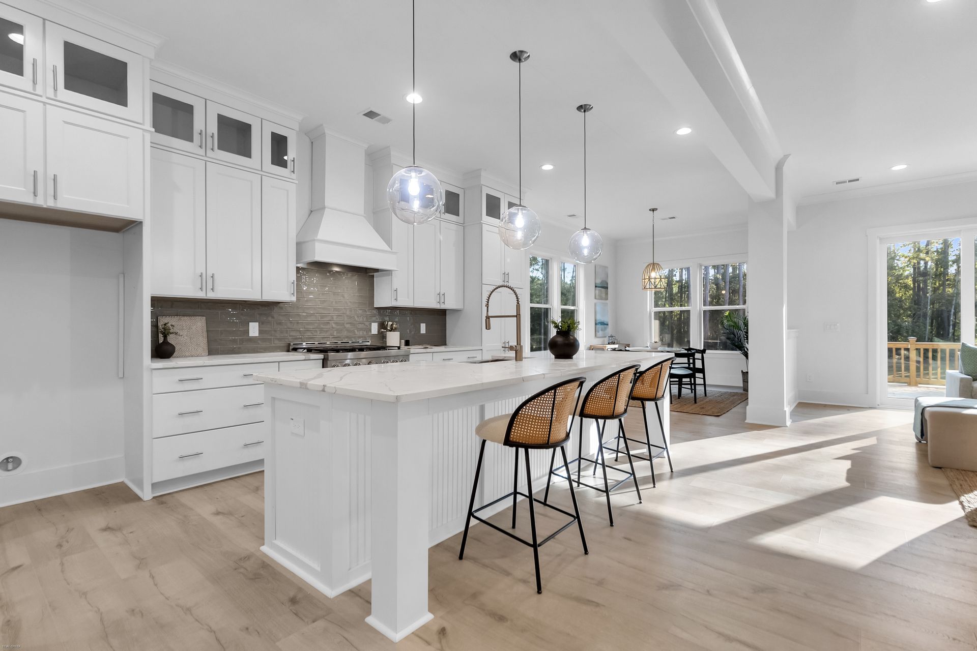 Discover luxury living in gated Wassamassaw Plantation. This stunning semi-custom home offers 3,844 sq ft of luxury living, including a spacious main-level primary suite with a spa-inspired bath, dual closets, and a freestanding tub. The gourmet kitchen is designed for entertaining--quartz island, stainless steel appliances, gas range, double ovens, wine bar, and butler's pantry connecting to the formal dining room. Enjoy wooded views from the rear deck and great room, enhanced by 12-ft sliding glass doors and a cozy gas fireplace. Additional highlights include a private study, game room, two laundry rooms, and unfinished bonus space. Nestled on a large, tree-backed lot with 3-car side-load garage and 4-zone irrigation.