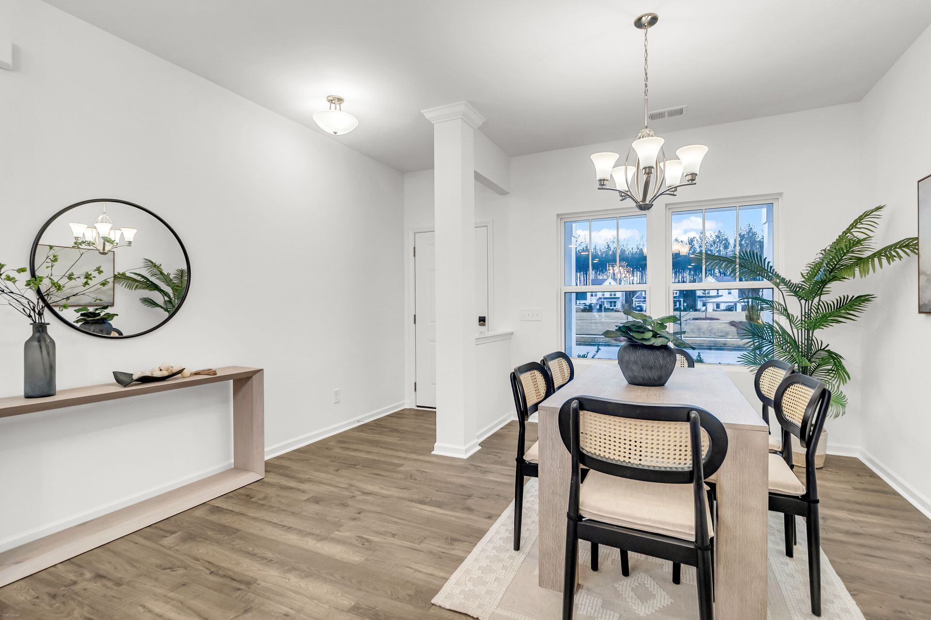 The Tanner P plan offers convenient main-level living with a spacious Primary suite and nearby laundry room. The well-designed kitchen features stainless steel appliances, modern finishes, and a separate but open dining area that seamlessly flows into the kitchen and Great Room, creating an ideal space for entertaining. Upstairs, you'll find two generously sized secondary bedrooms, a full bath, and a large loft area perfect for relaxation or additional living space. The second floor also includes a storage area and utility room, adding to the home's functionality. This thoughtfully designed home combines comfort and modern style in every detail. Lot boasts a gorgeous view of the 2-acre park from front porch!