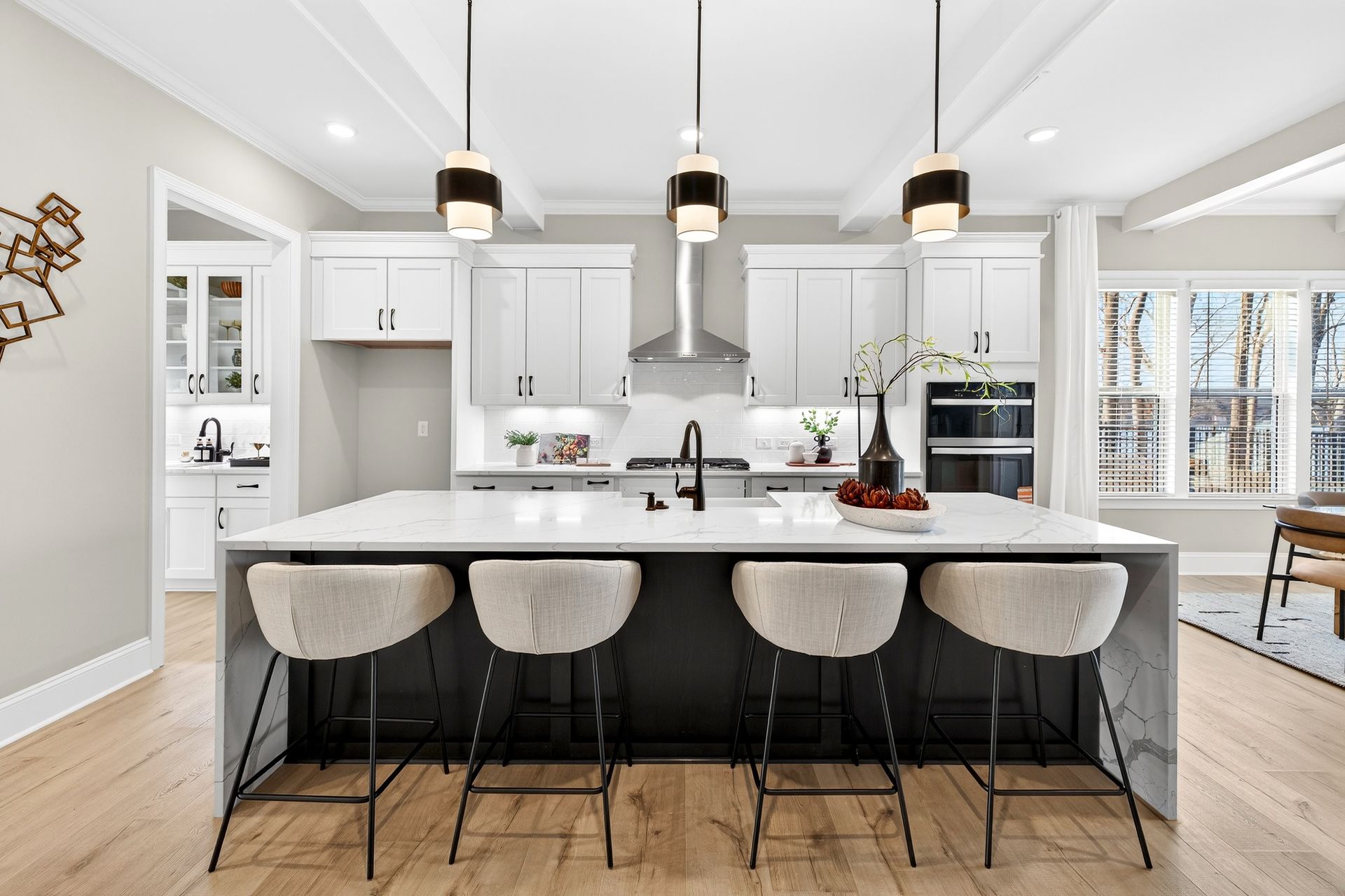Discover the Kensington plan, a stunning semi-custom home offering over 4,100 sq. ft. of thoughtfully designed living space on a near half-acre, lakefront, dockable homesite. This quick move-in opportunity features 4 bedrooms, 3.5 baths, and extensive upgraded features throughout. The main level showcases a private study with beamed ceiling, formal dining with tray ceiling, and an open-concept great room with gas fireplace. The gourmet kitchen is equipped with a quartz island, porcelain farmhouse sink, stainless steel appliances, vented canopy hood, and butler’s pantry. Enjoy seamless indoor-outdoor living on the rear screened porch. The primary suite on the main level offers a spa-inspired bath with garden tub, tiled shower, dual vanities, and walk-in closets. Upstairs includes two additional bedrooms, a game room, bonus room, and two full baths. Located in the Edgewater Golf Course Community with pool, clubhouse, boat docks, and walking and biking trails—an exceptional opportunity for comfort, flexibility, and lifestyle.
